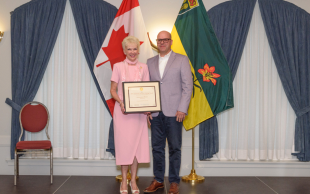 P3A is proud to be the recipient of two Lieutenant Governor’s Heritage Awards from Heritage Saskatchewan in the Conservation of Heritage Places category: Government House Repointing and John Hopkins Soundstage Repointing & Masonry Repair. Both projects exemplify the importance of maintaining heritage buildings through minimal intervention. The Standards and Guidelines for Historic Places in Canada informed decisions to ensure integrity in any changes made. These types of projects set a valuable precedent for physical heritage conservation work in Saskatchewan. Wyatt Eckert, P3A Principal and team lead on both projects, accepted the awards from the Honourable Bernadette McIntyre, Lieutenant Governor of Saskatchewan. We would like to also acknowledge Kaylon Weisbrod and Joshua Gottselig who were the primary Architectural Technologists on the project.